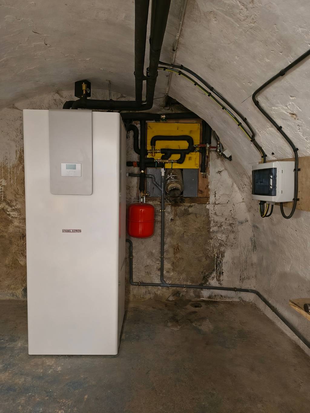 Suite au remplacement d’une ancienne chaudière fioul non condensation et après la réalisation d’une étude thermique précise des besoins en chauffage, nous proposons à notre cliente, en tant qu’installateur RGE QualiPAC, l’installation d’une pompe à chaleur Stiebel Eltron HPA-O 13 C monophasée, assurant le chauffage et la production d’eau chaude sanitaire.